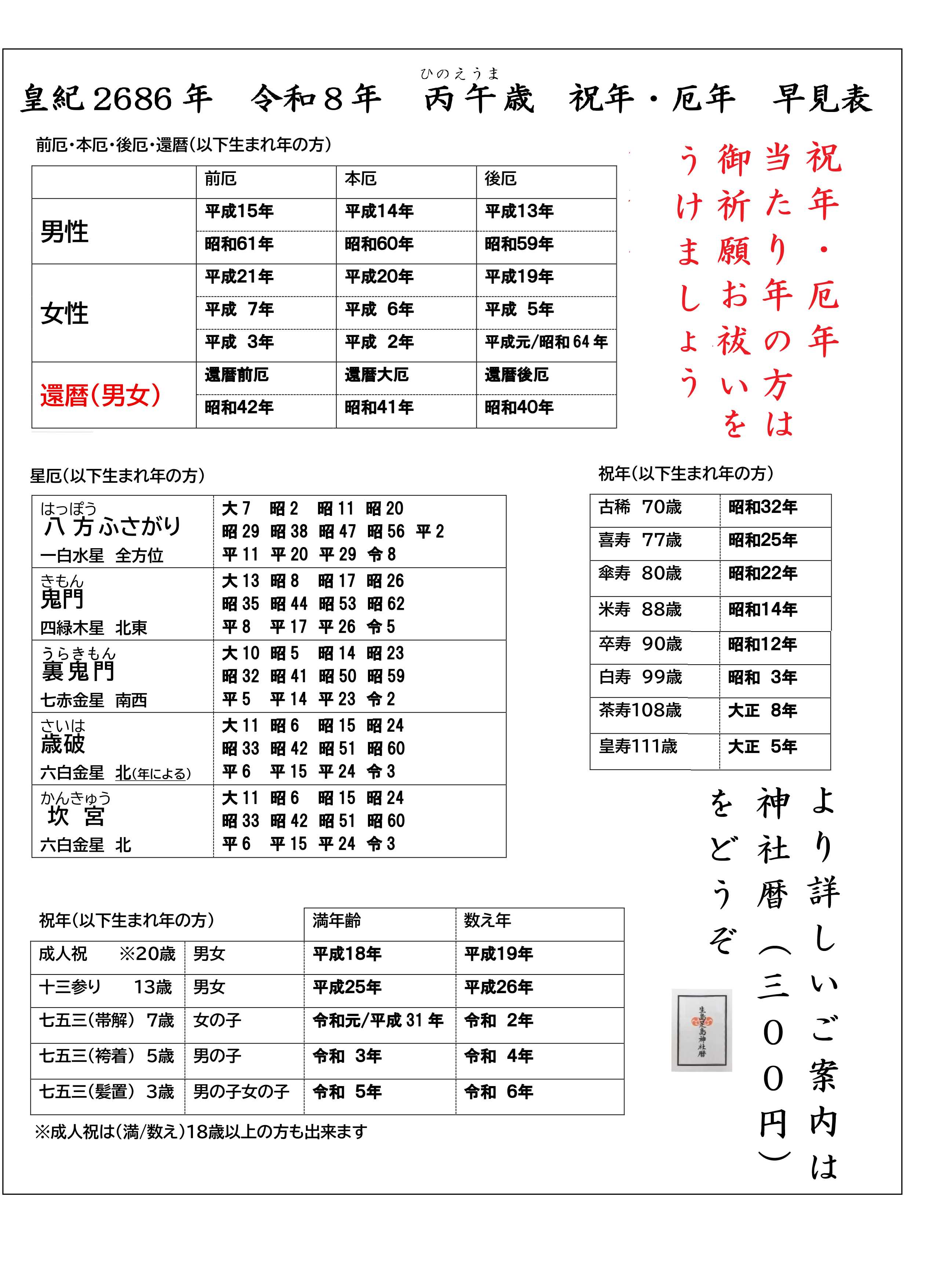 令和7年厄年表